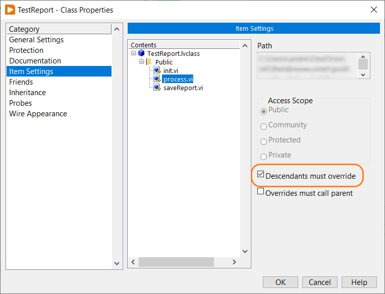 鉴于LabVIEW中不存在抽象(纯)类,我们可以大致将抽象类视为基类(超类),其动态方法和属性为空,动态方法则用“后代必须覆盖”选项标记。我说的是抽象类,而非基类或超类,仅仅是为了获得更理论化的理解。注意,本子章中的所有考虑也可以应用于混合类(即非纯抽象)基类。